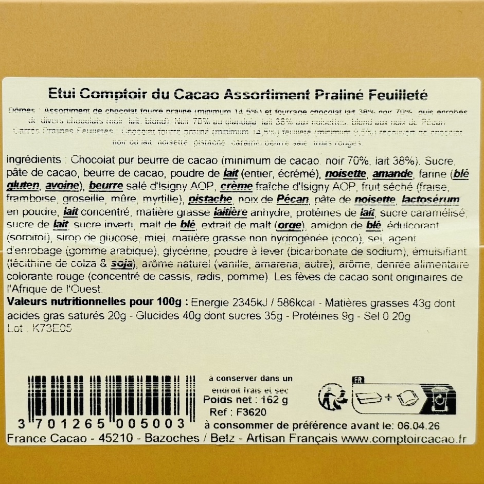 ÉTUI ASSORTIMENT PRALINÉ FEUILLETÉ « COMPTOIR DU CACAO »