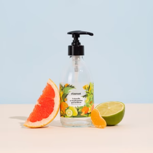 Troquez une bouteille en plastique jetable par une jolie bouteille en verre rechargeable ! ✨ Plus besoin de lutter pour ouvrir le bouchon avec les mains mouillées ! Glissez votre éponge sous le bouchon, appuyez et c’est justement dosé.
