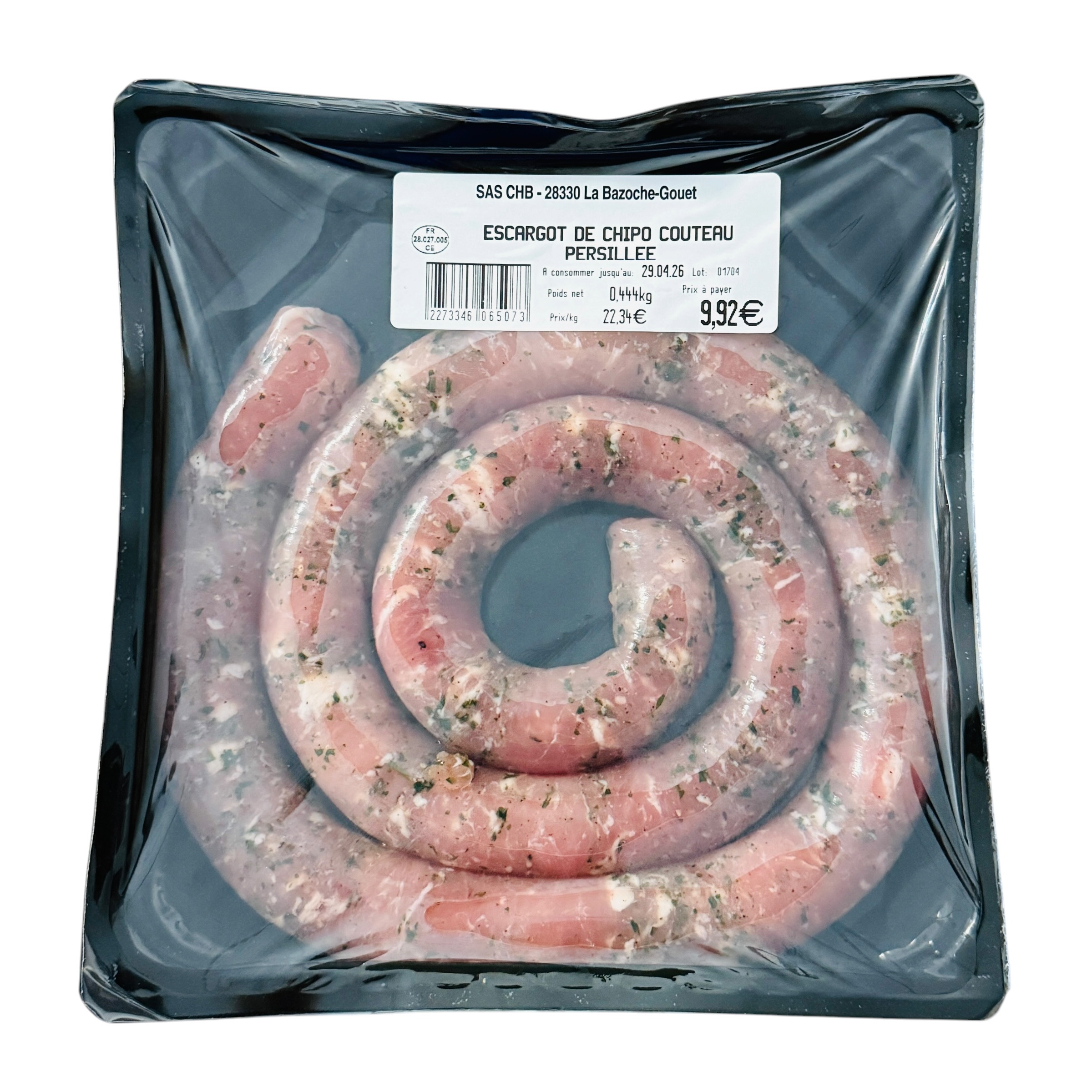 Composition: Escargot de chipo couteau persillée (poids total 450g environ), le calcul du prix s’effectuera en fonction du poids au moment de la livraison dans nos casiers LOCALIE EXPRESS.