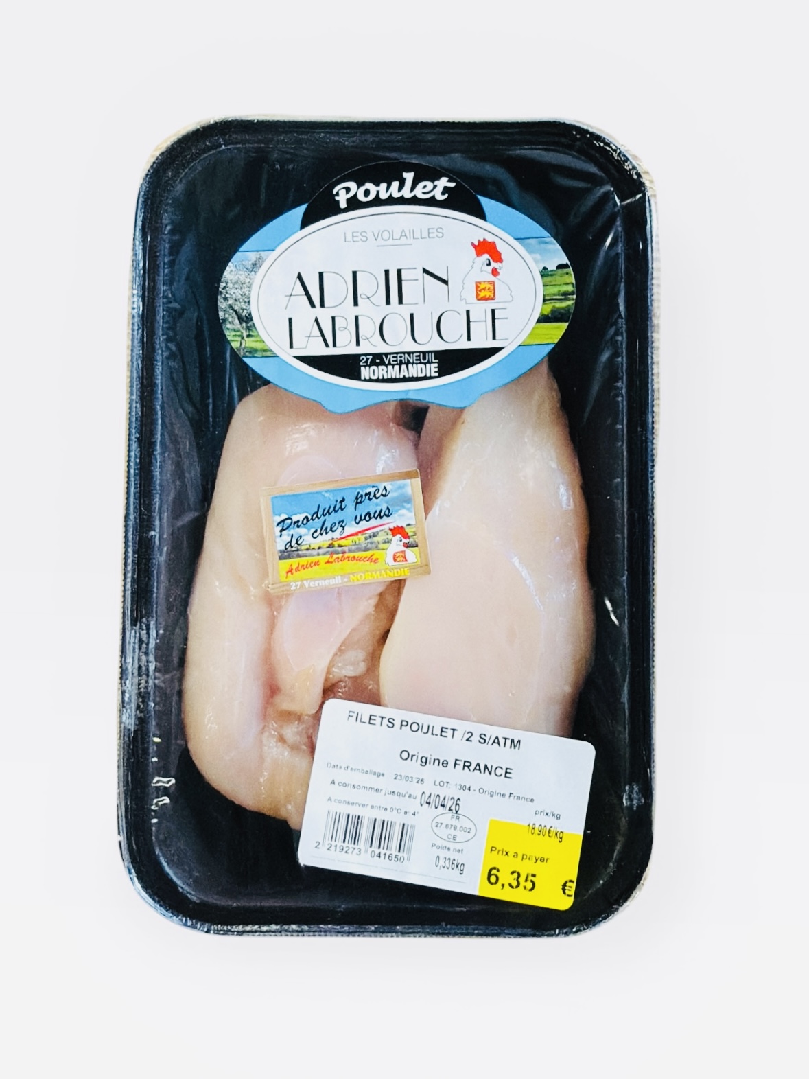 Composition: 2 filets de poulet (poids 360g environ), le calcul du prix s’effectuera en fonction du poids au moment de la livraison dans nos casiers LOCALIE EXPRESS.